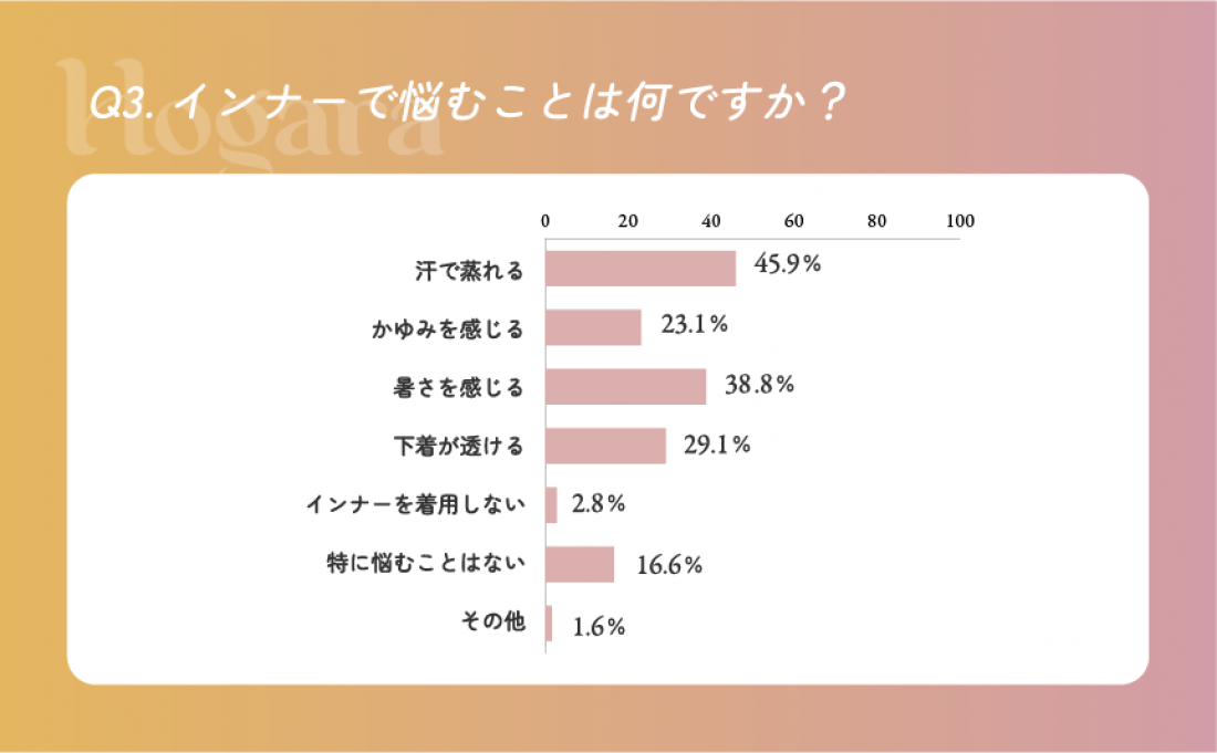 インナー着用時のお悩み第1位は、「汗でムレる」45.9%、