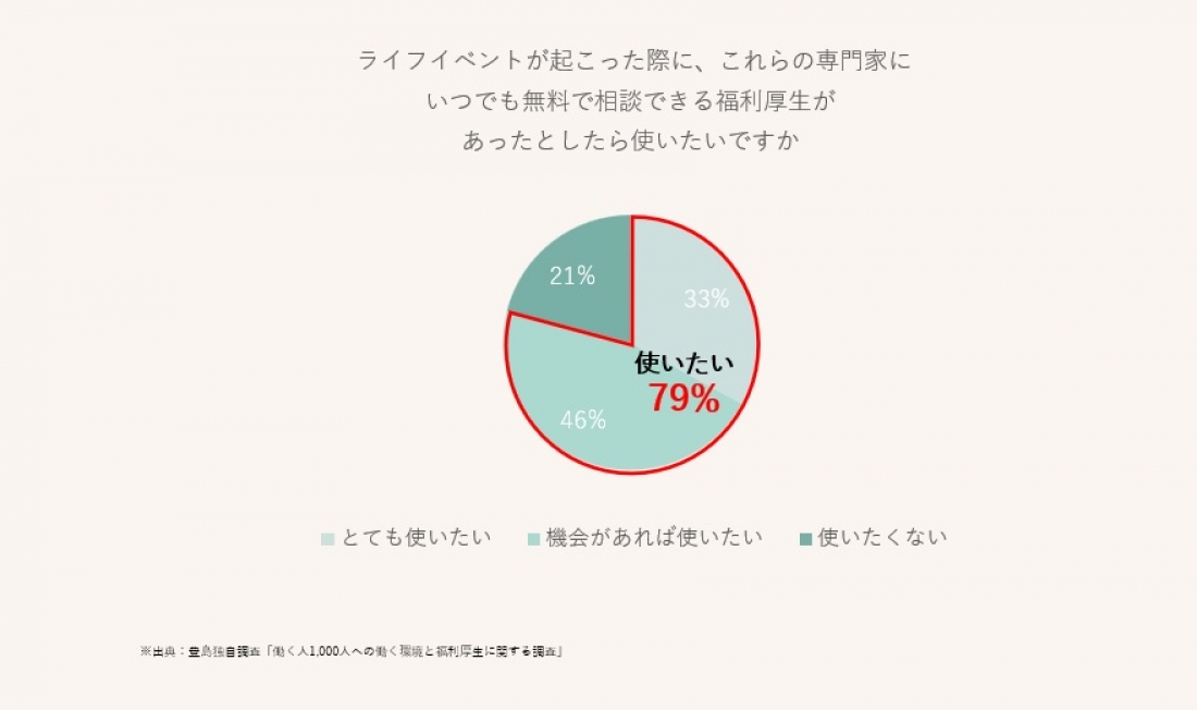 3つのサービスの中でも特に「専門家相談」は、従業員やその家族のライフステージの変化を応援するための仕組みで、