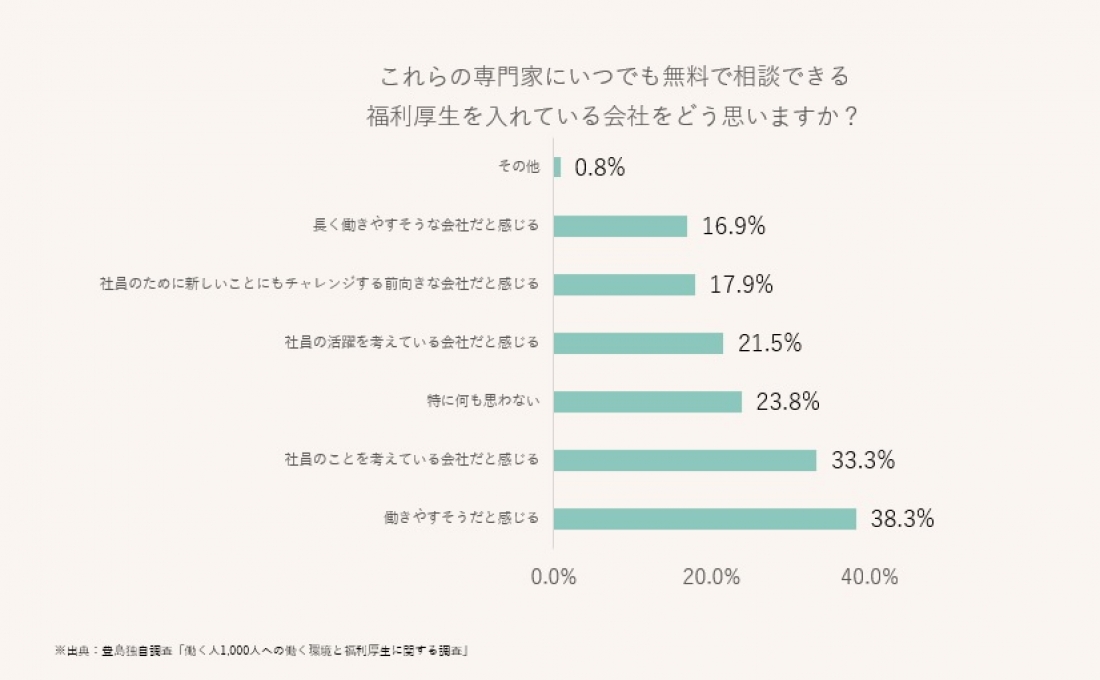 さらに、このような専門家に相談ができる福利厚生サービスを導入している企業について、