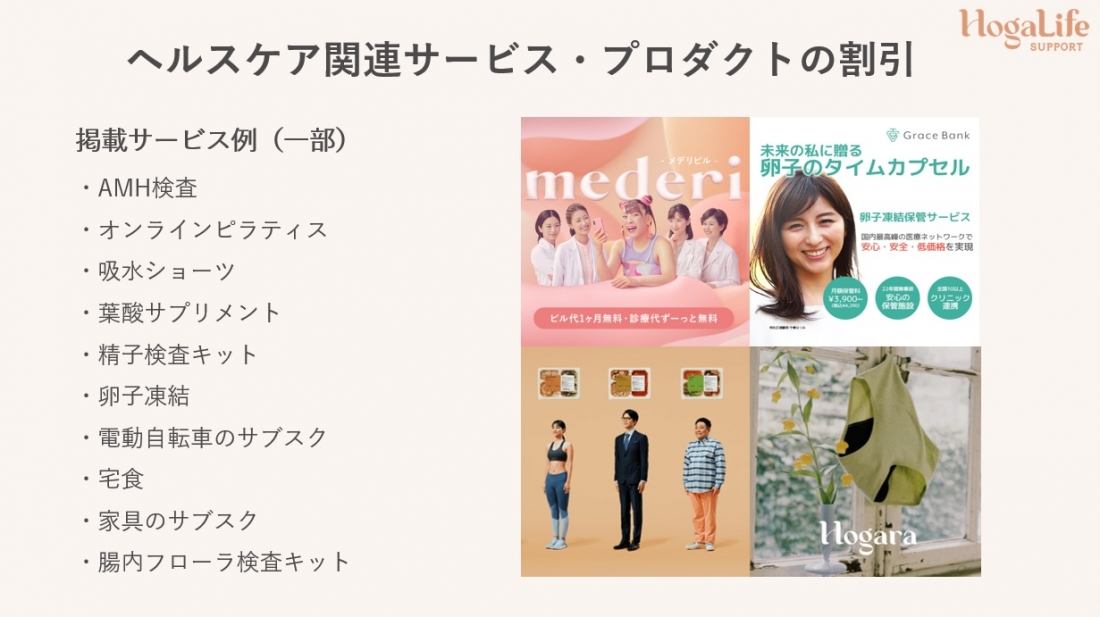 ライフステージごとに必要になるヘルスケアプロダクトを、社割価格で提供します。